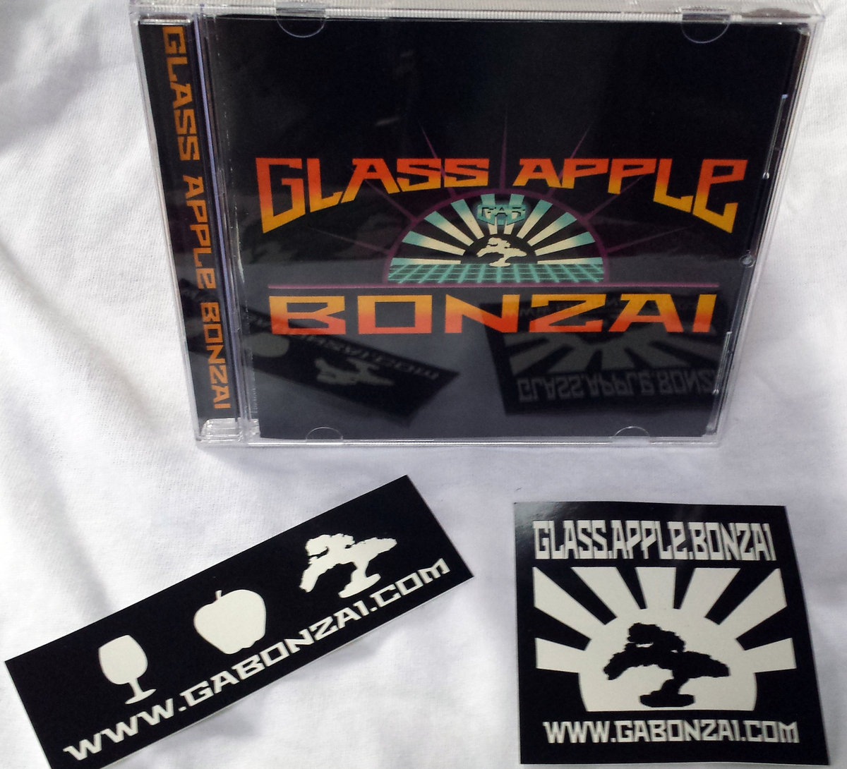 A CD version of Glass Apple Bonzai in a standard clear jewel case with artwork by Paul Sizer of SIZER Design+Illustration.